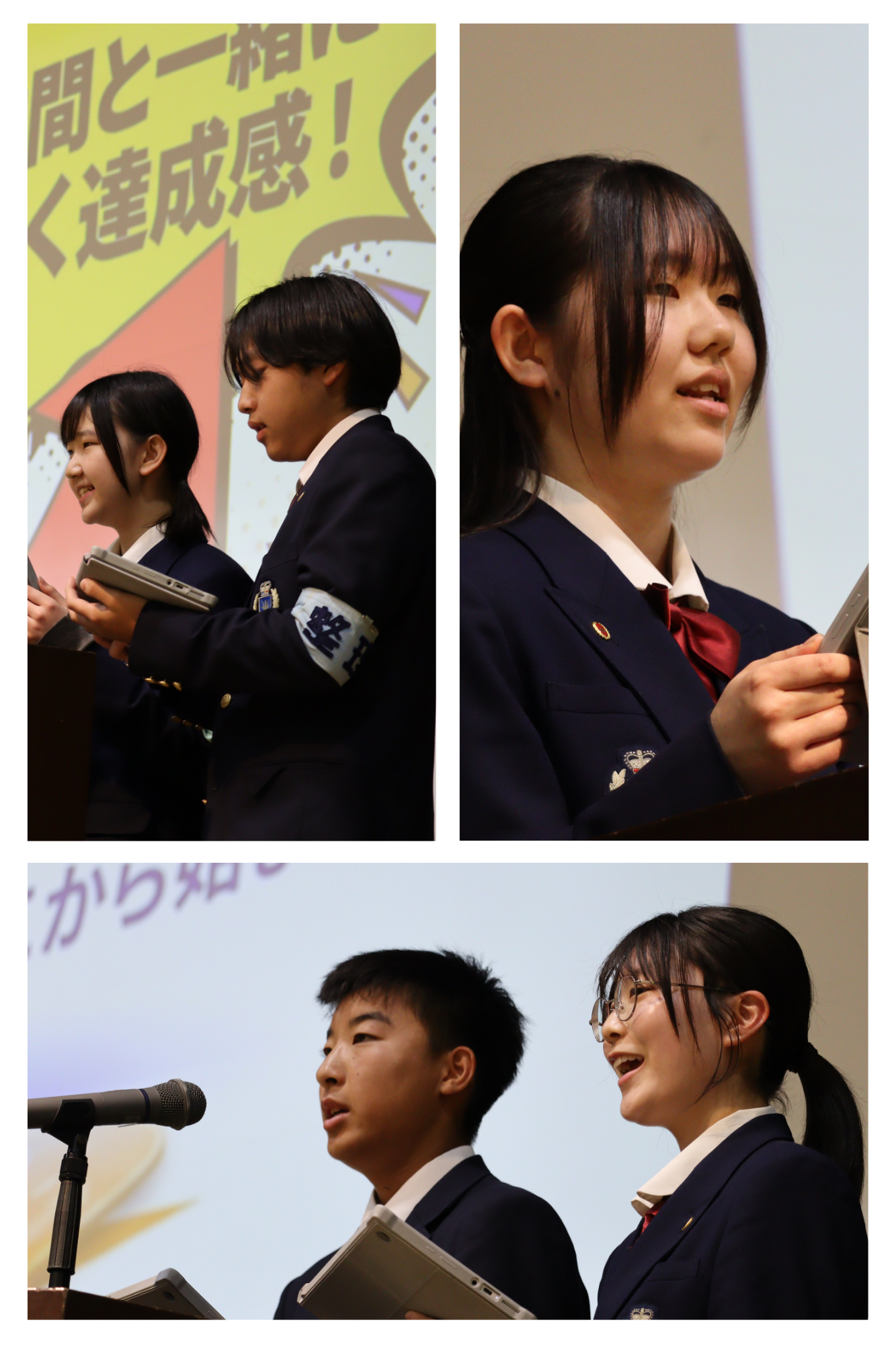 生徒会からは、今年度の活動方針「絆で拡がる友との翼 世界を繋ぐ鳳凰へ」が発表され、「つながり」「感謝」「挑戦」を大切にしながら、仲間とともに成長していこうとの決意が呼びかけられました。