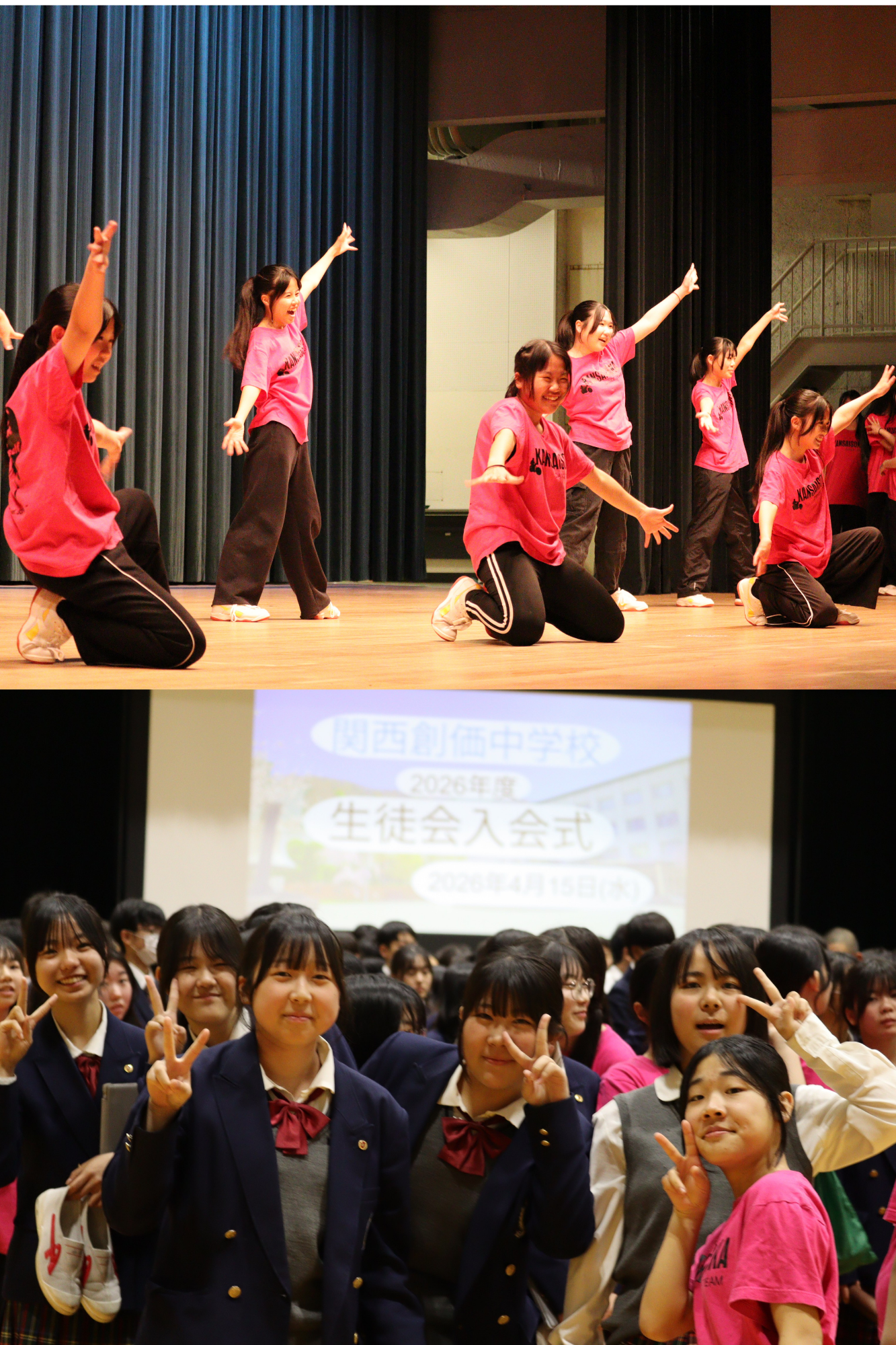 4月15日(水)、池田講堂において、生徒入会式を実施しました。ダンス部による新入生歓迎の演技やメッセージ動画、生徒代表による決意表明などを通して、温かな雰囲気の中で新入生を迎えました。